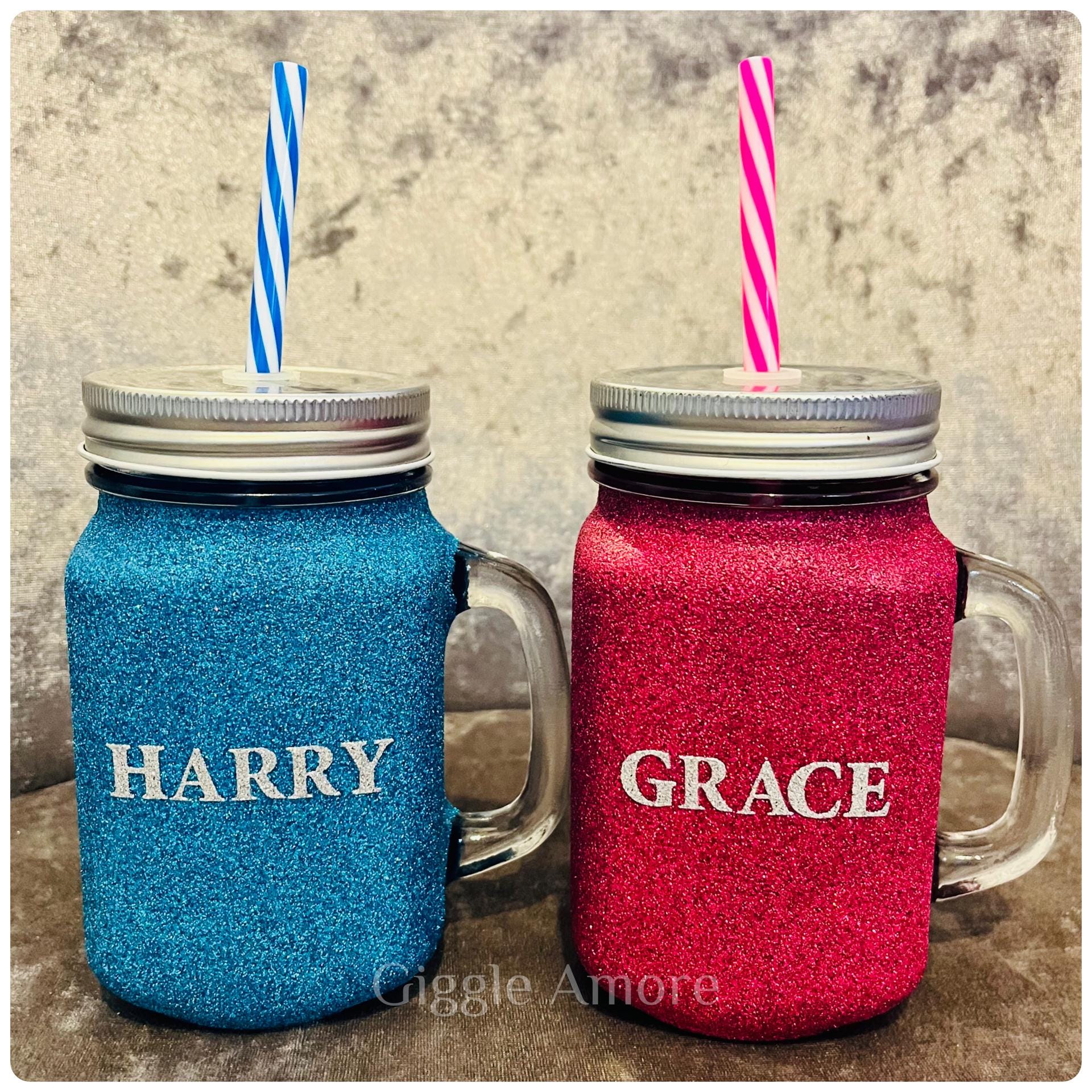 Personalised glitter glass jar with handle.Please select the main glitter colour required and add the name in the personalisation box.Many thanks.Hand-wash only.
