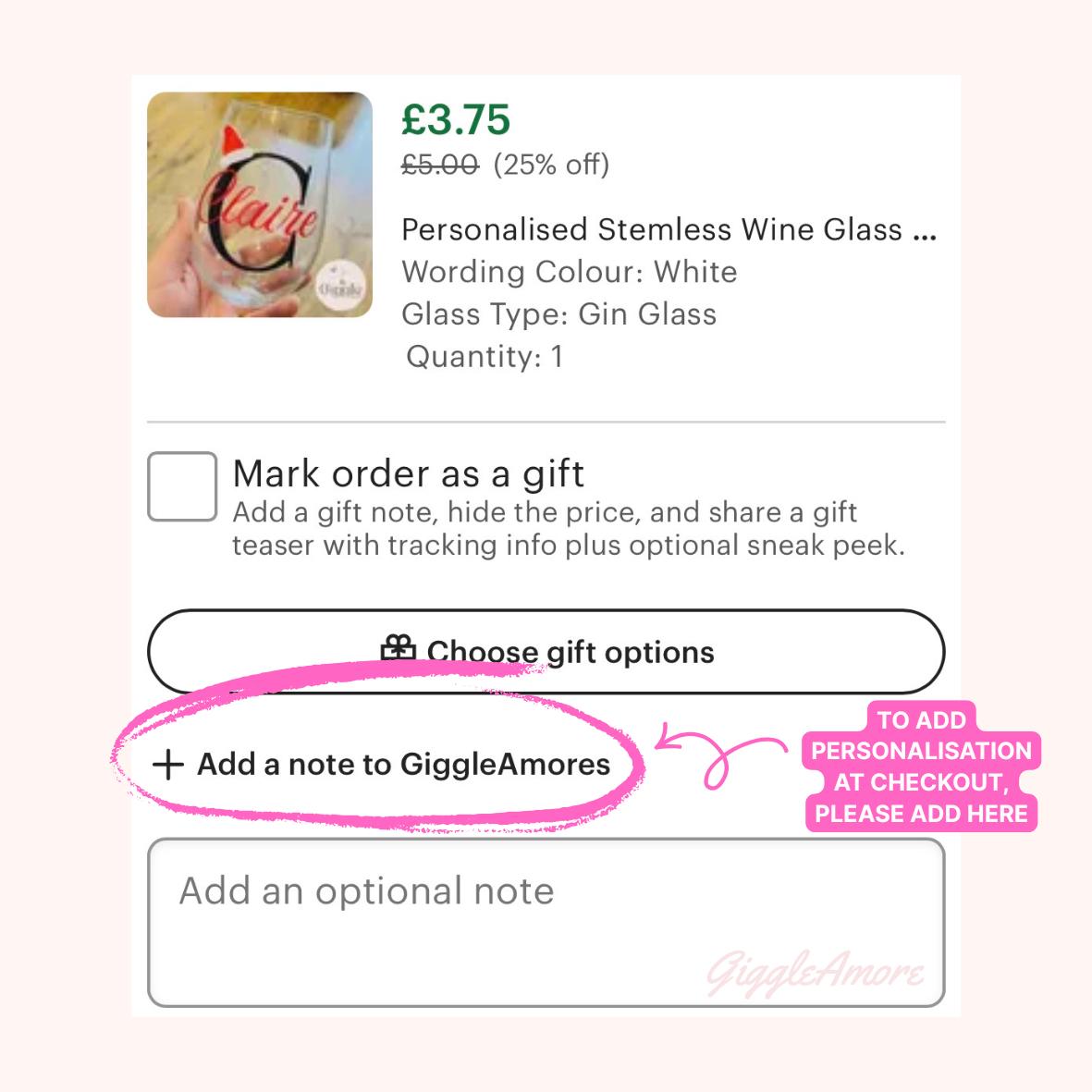 Please add details in checkout or via message.
