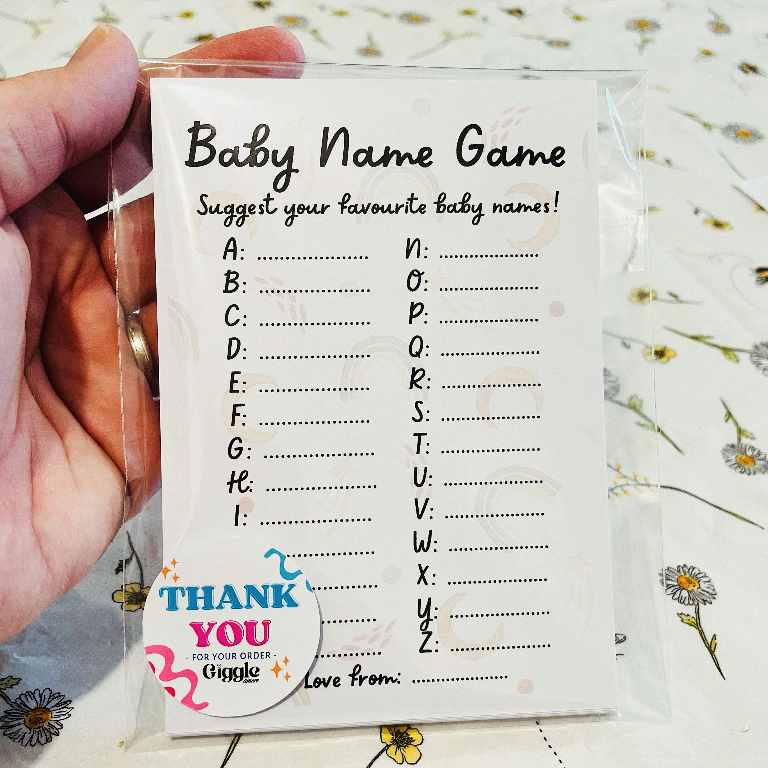 Introducing our Baby Shower Game name ideas/suggestion cards, game/activity/prediction Cards, perfect for both boys and girls! Designed by BethanyRose, these cards are a must-have for any baby shower celebration. Get your guests involved in the fun and excitement with this game that is sure to keep everyone entertained.
