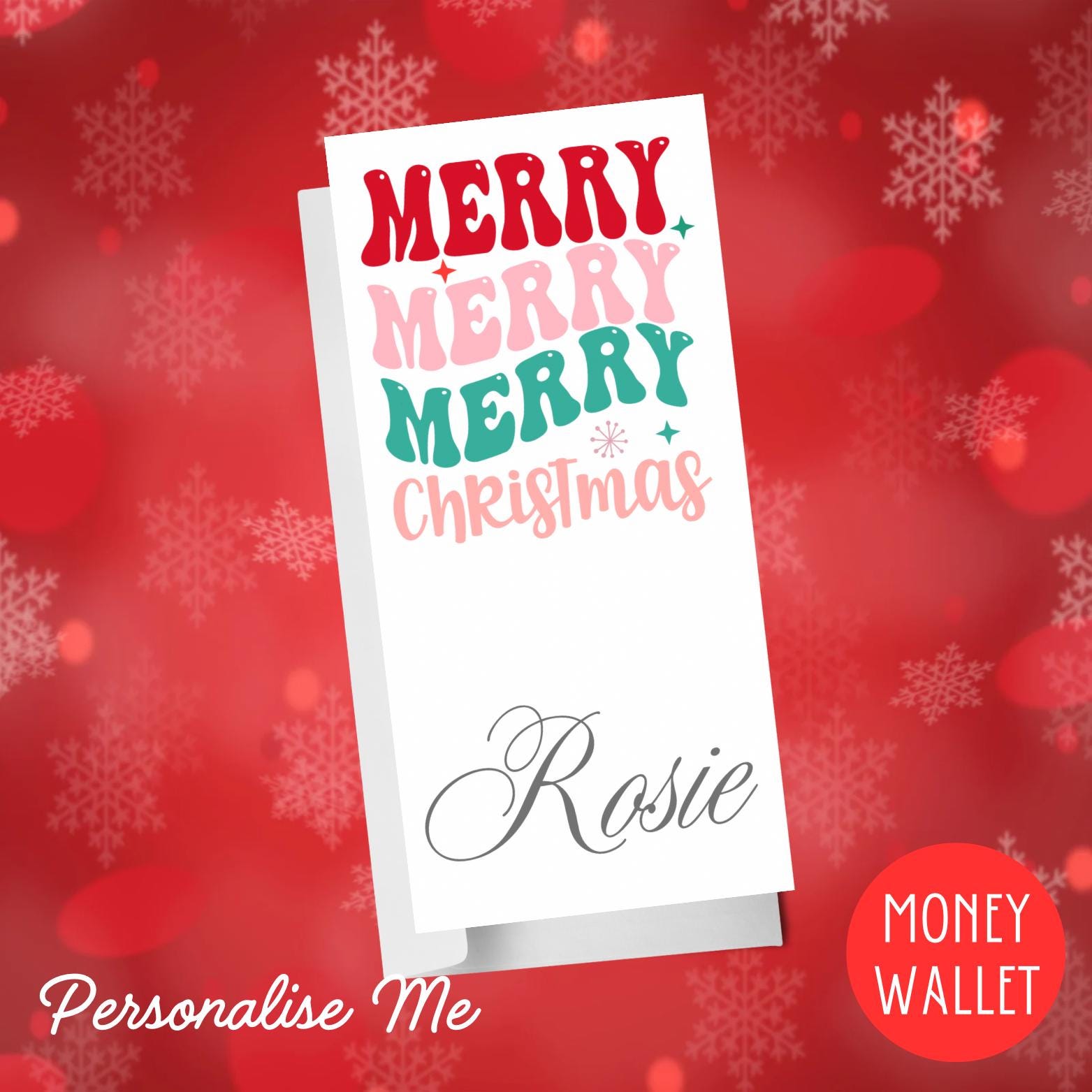 This handmade, personalised money wallet gift card is perfect for Christmas. Measuring 10 cm in height and 21 cm in width, this folded card is artist designed and customisable, and comes with an envelope included.