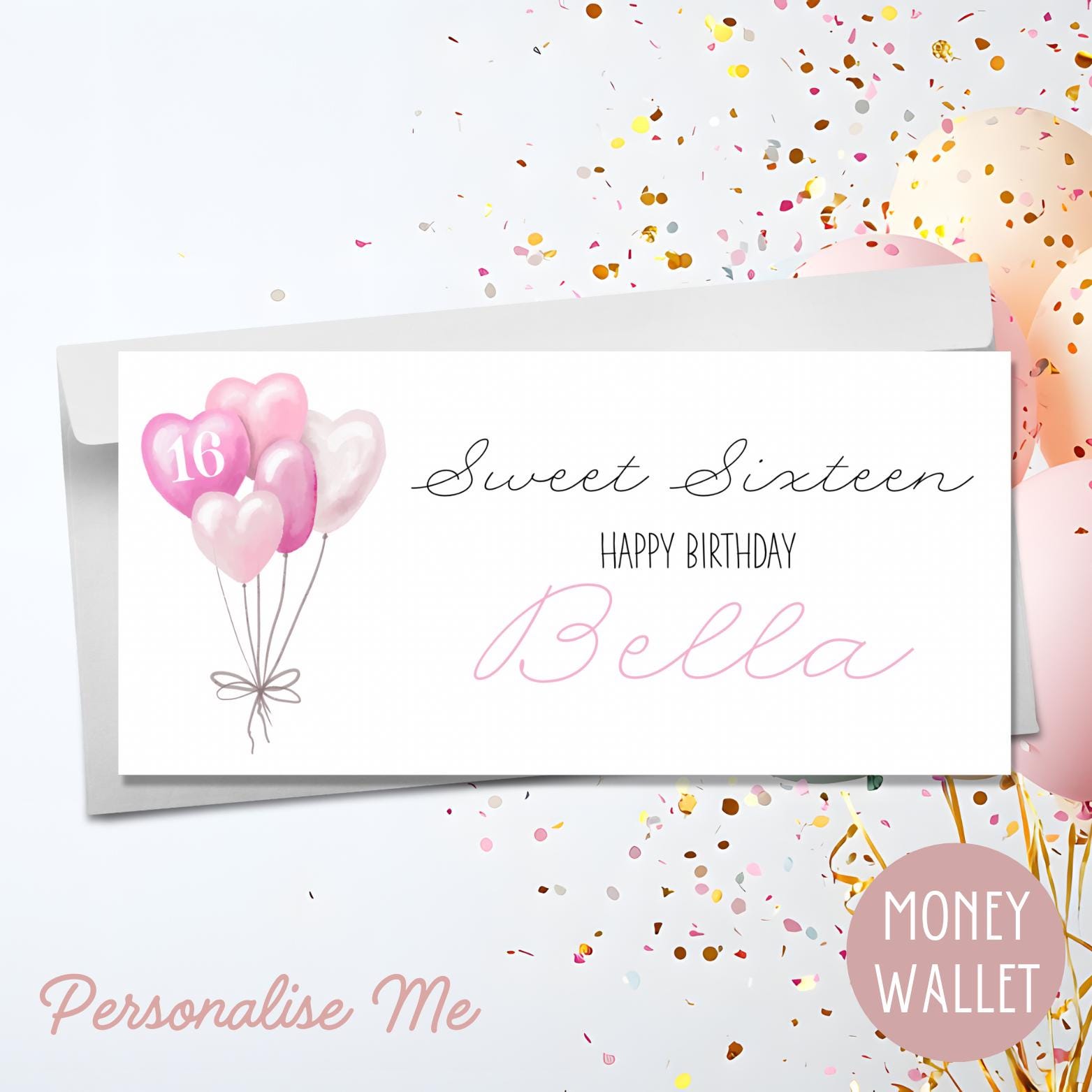 Handmade Personalised Money Wallet Gift Card Birthday Sweet Sixteen Birthday Wedding Engagement Pink
