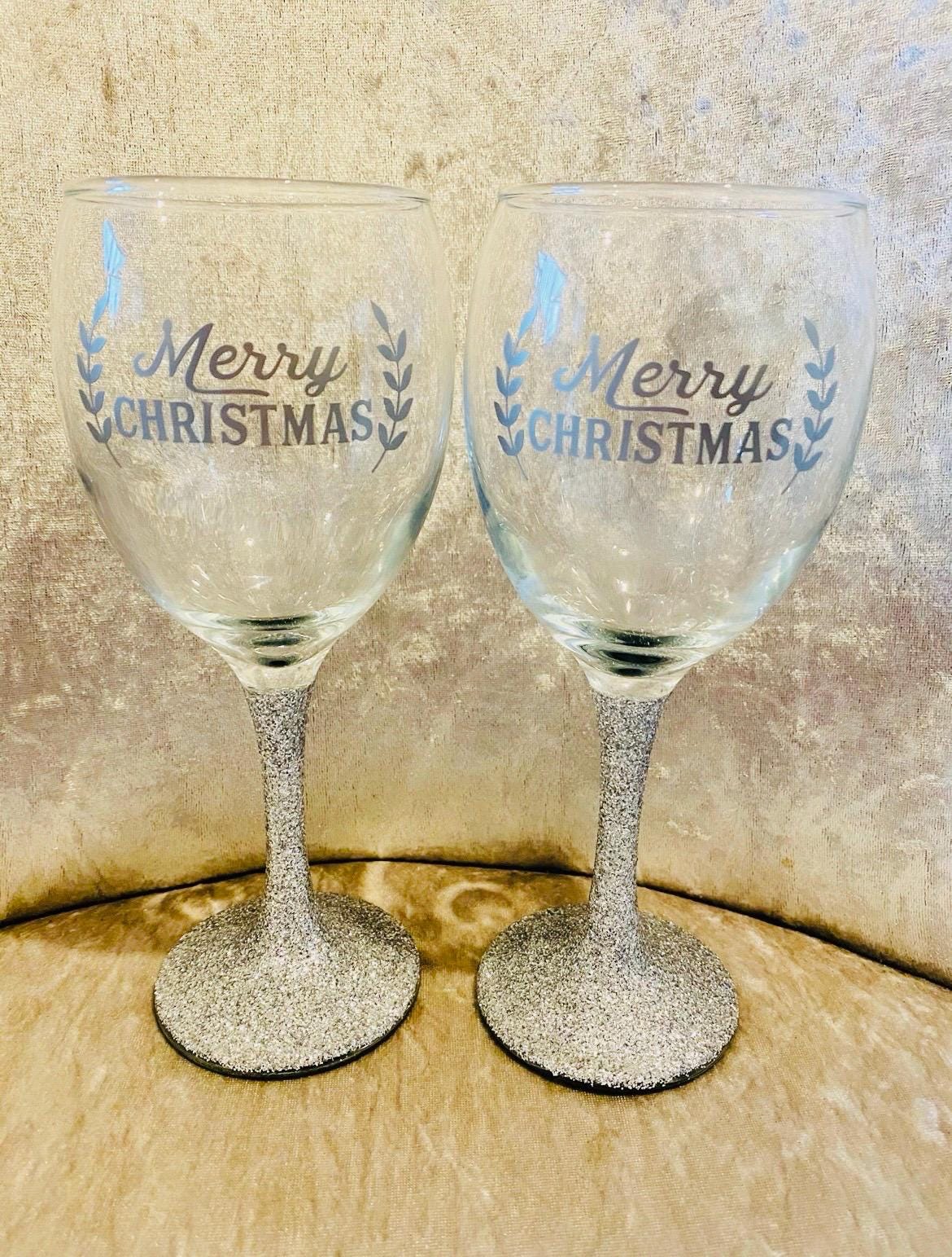 Merry Christmas personalised glitter wine glass made to order. Fully waterproof sealed and useable. Can be made in other colours simply add details when purchasing xHand wash only x