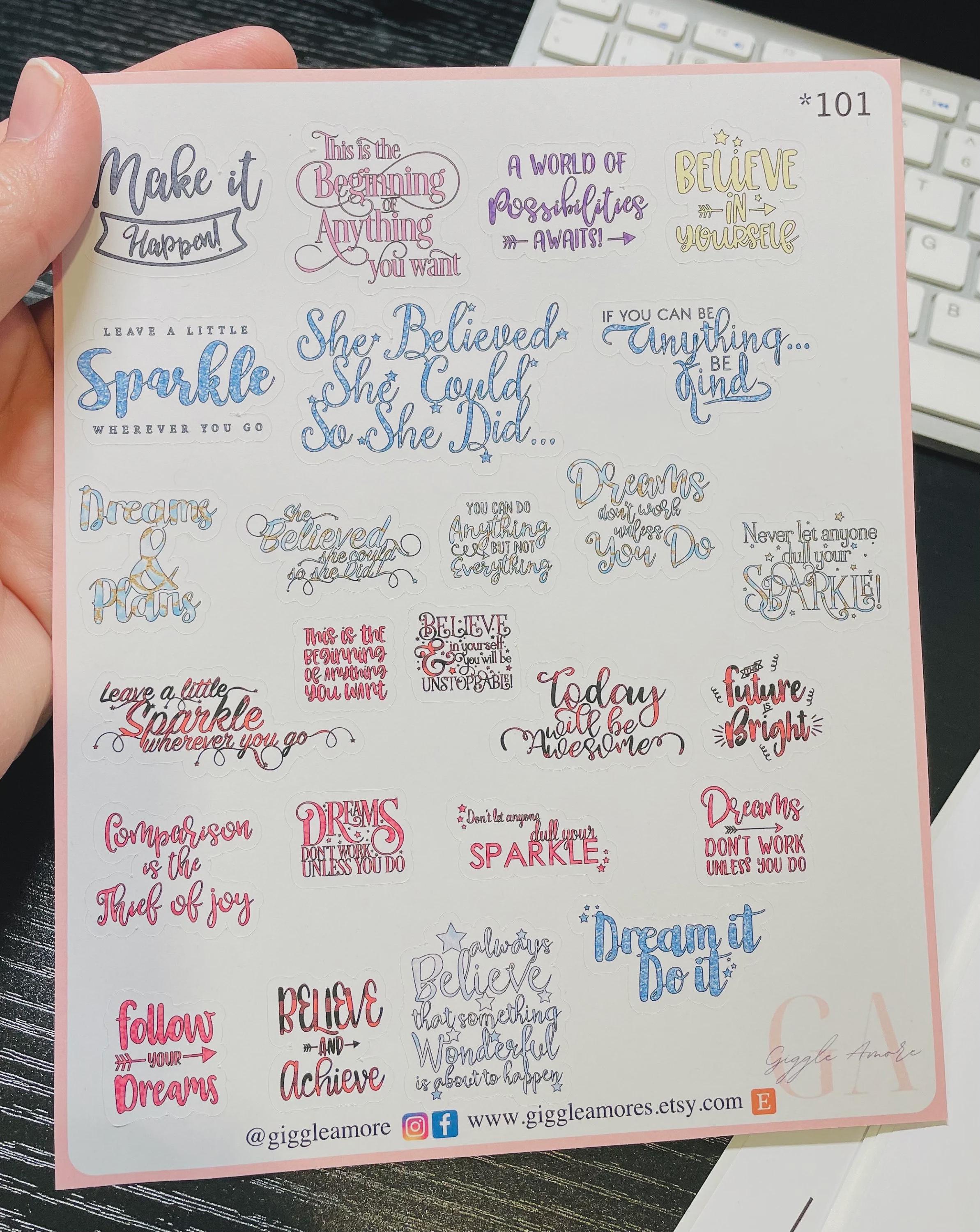 Great little quote stickers. Fit in my planner beautifully. Love the words and colours. Thank you.